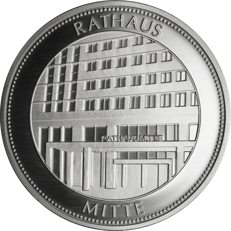 In einer 12-teiligen Gedenkprägungsserie widmet sich die Münze Berlin den Berliner Bezirken. Die Münze der Hauptstadt präsentiert das Wappen des jeweiligen Bezirks sowie das bezirkliche Rathaus.