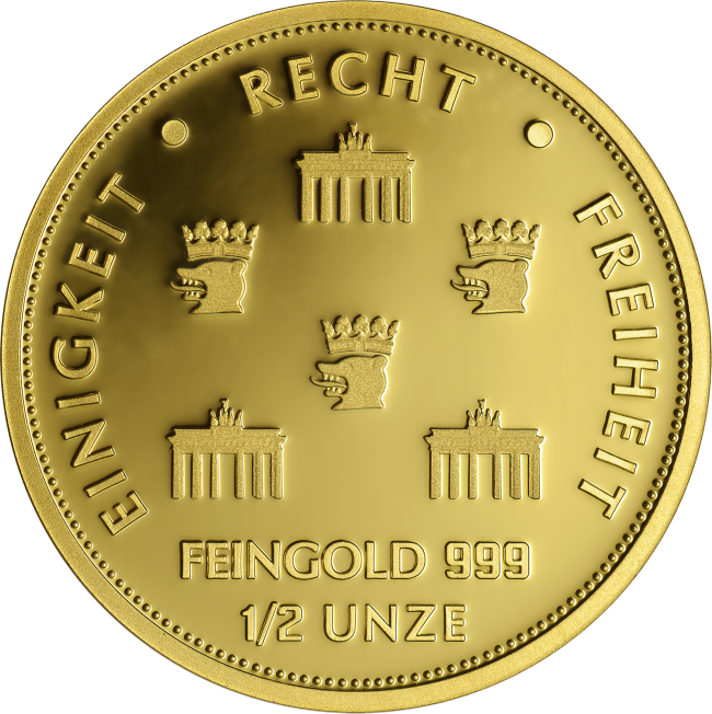 Das Gewicht und die Reinheit des Feingoldes (999/1000) werden durch die Münze Berlin garantiert.