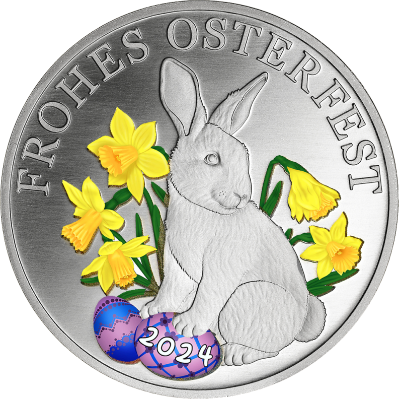 Mit dieser strahlend bunten Osterprägung machen Sie jedem eine Freude! Das schöne Farbmotiv verbreitet sofort eine frühlingshafte Stimmung und begeistert Groß und Klein. Unsere Osterprägung ist der Auftakt zu einer neuen Serie, die jedes Jahr zu Ostern herausgebracht wird.