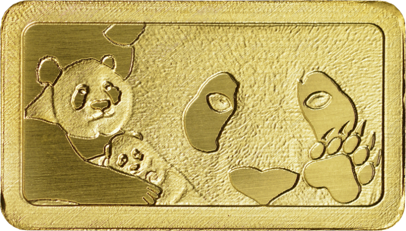 Der Goldbarren "Panda 2018" präsentiert einen Motivausschnitt des Silber-Pandas aus dem Jahr 2018. Der SILBER PANDA ist eine Anlageprägung der Münze Berlin. Auf der Rückseite ist das Brandenburger Tor dargestellt.