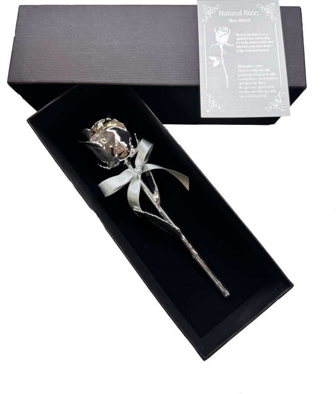 Natürlich gewachsene Rose ist hochwertig versilbert und wird in einer edlen Kartonage mit Echtheits-Zertifikat ausgeliefert.