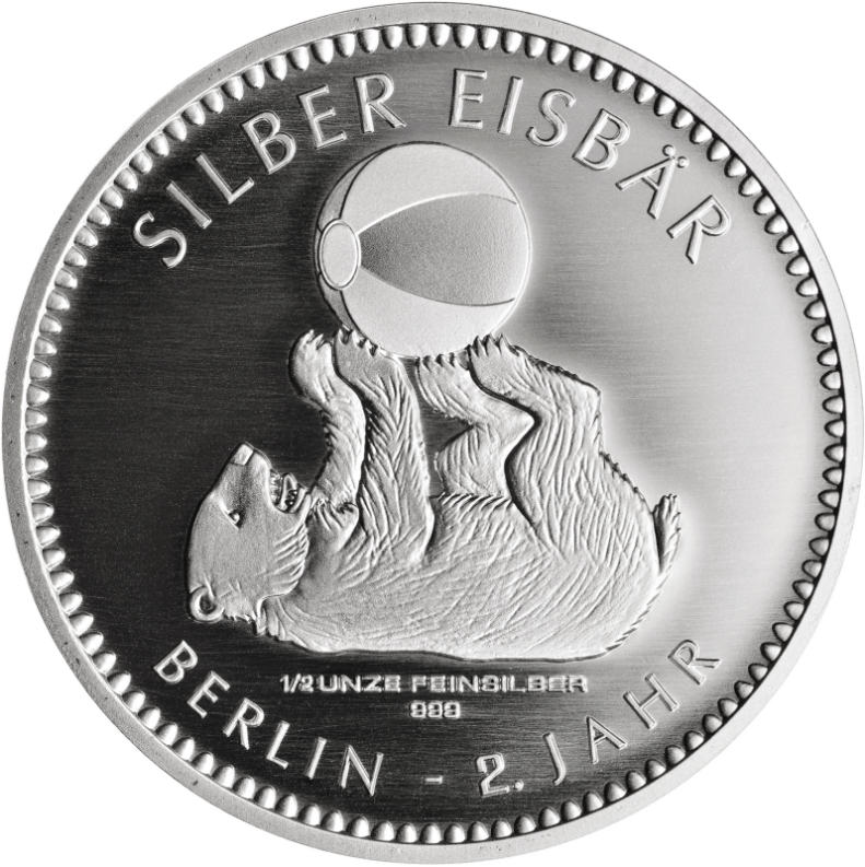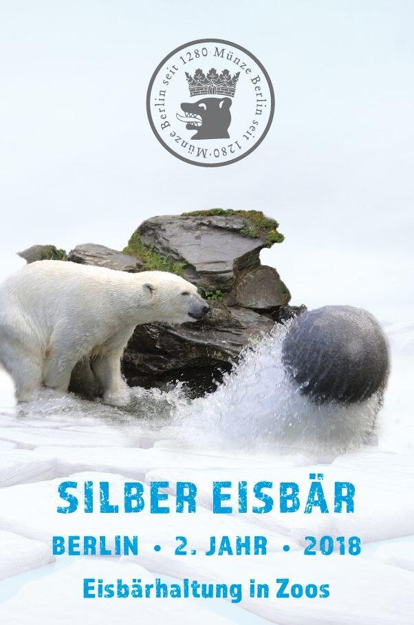 Eisbären in Berlin - Siebenteilige Feinsilberserie. Ausgabe 2018 - 2. Jahr "Eisbärhaltung in Zoos". Jedes Jahr zum Welt-Eisbärentag wird das neue Motiv präsentiert