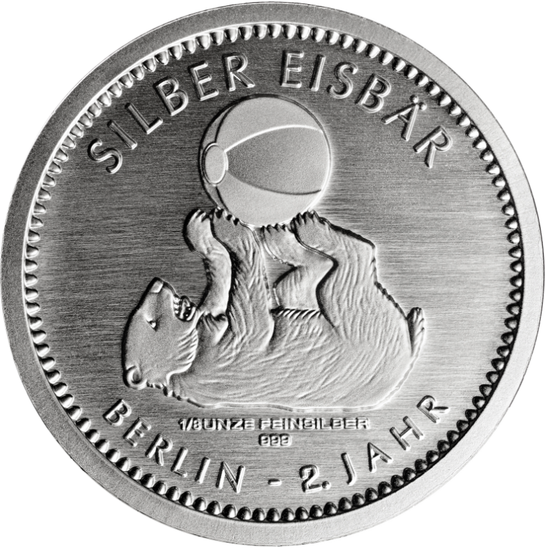 Eisbären in Berlin - Siebenteilige Feinsilberserie. Ausgabe 2018 - 2. Jahr "Eisbärhaltung in Zoos". Jedes Jahr zum Welt-Eisbärentag wird das neue Motiv präsentiert